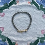 100% stainless steel hand-woven chain necklace with a foraged bone centerpiece.