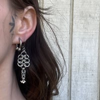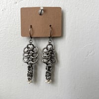 100% stainless steel handwoven chainmail earrings with foraged snake vertebrae bones.