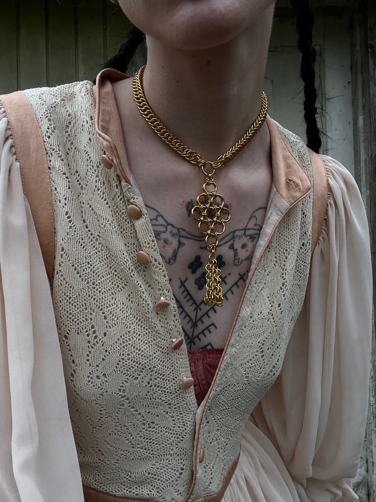 The brass jump rings are NuGold, a brass alloy with a warm golden coloring made of 85% copper and 15% zinc.